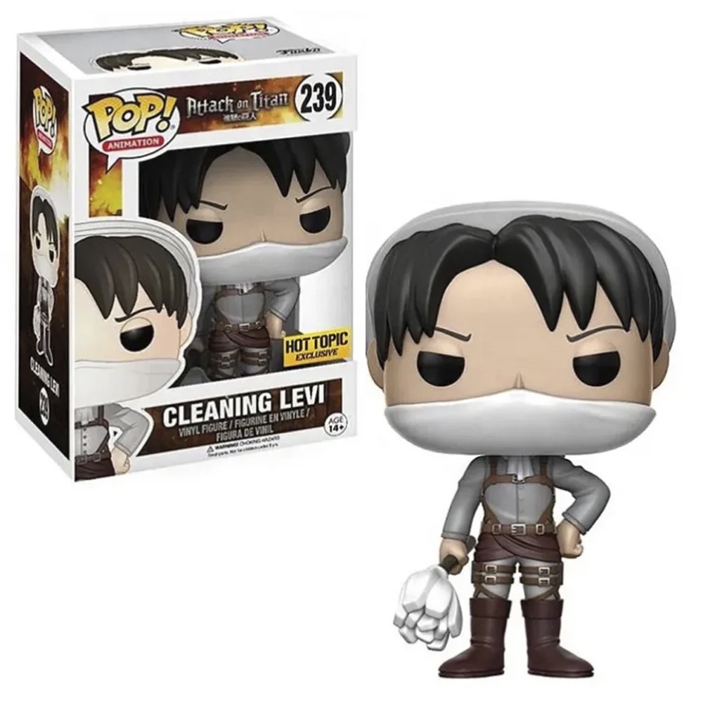Funko Pop Cleaning Levi 239 — вінілова фігурка Леві у формі для прибирання з Attack on Titan. У цьому образі він одягнений у білу хустку, маску та фартух, демонструючи свою легендарну пристрасть до чистоти. Унікальна деталь для фанатів серії!